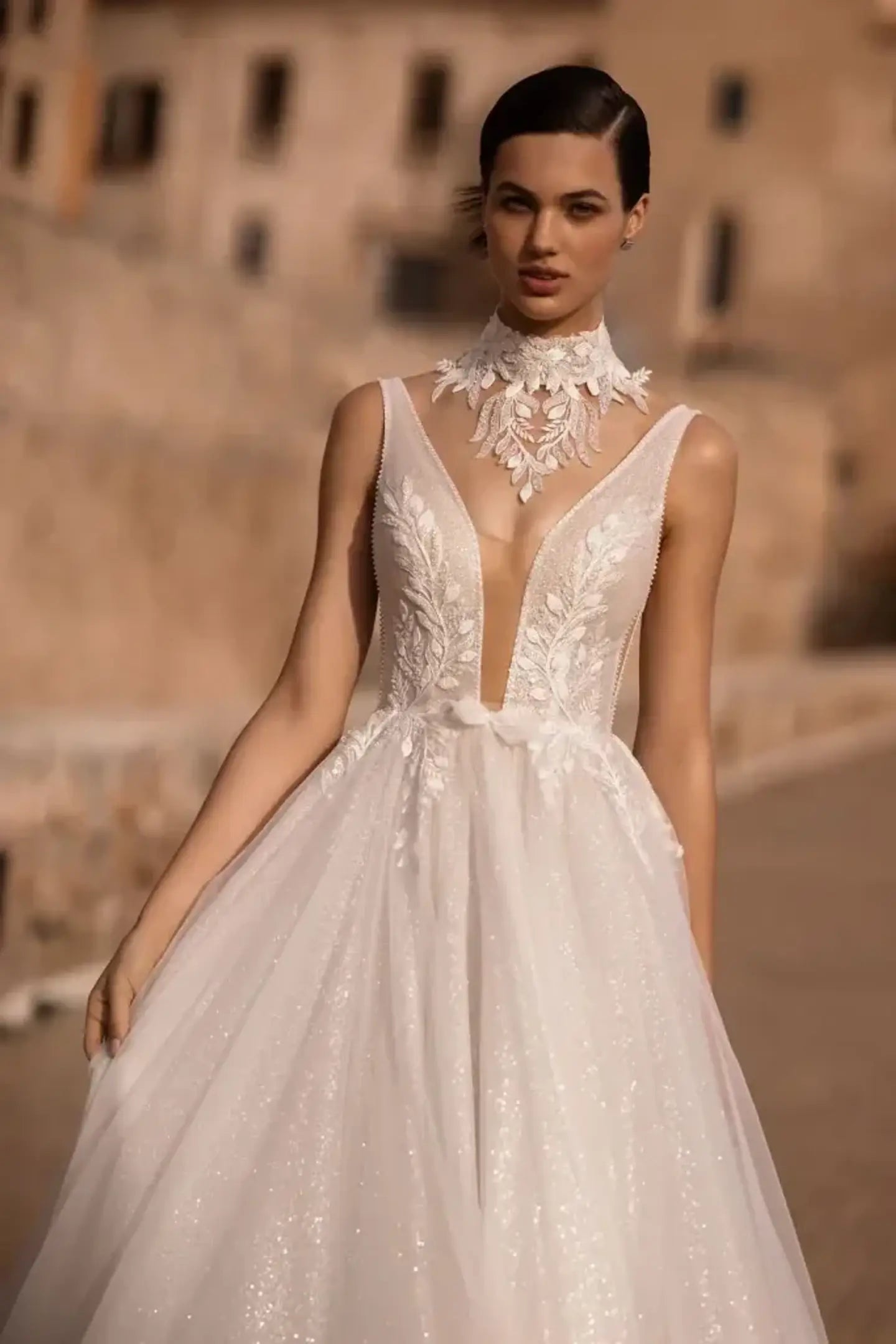 - Neckline: Plunging